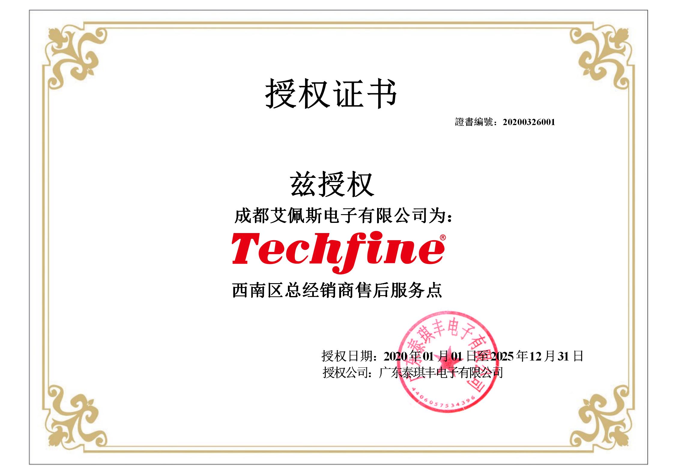 泰琪豐 授權證書